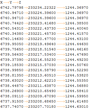 The data in the file has to be formatted in rows and columns. Each row (except the header row) describes one axis point. The first column is the X-Coordinate the second column is the Y-Coordinate and the third column is the Z-Coordinate of the axis point. Data in further columns will be disregarded.