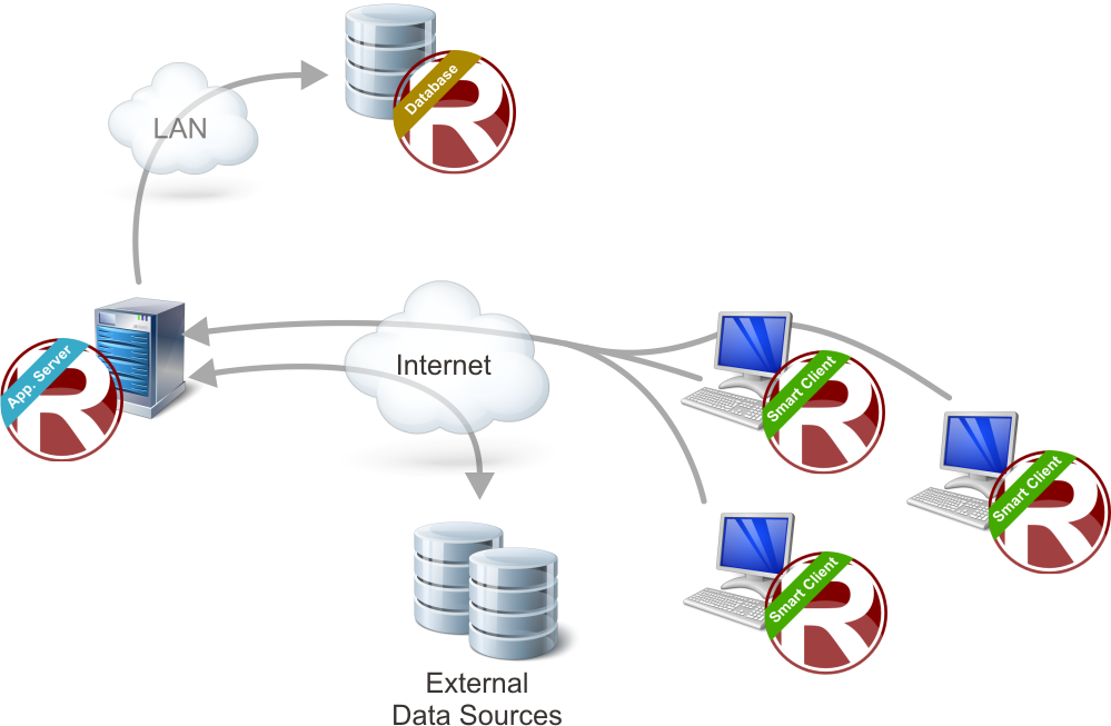 Figure 1 The the installation structure of the Redbex system when using connector features with external data sources.
