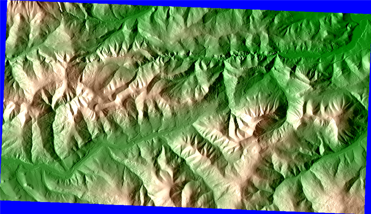 Figure 1: Visualization of a DEM (not done with Redbex). Blue areas are the areas not covered by the DEM