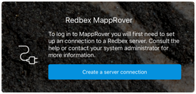 When starting the App for the first time you will therefore be shown a dialogue that invites you to create a new connection. Select Create a server connection and you will be taken to the Connection details page where you can input the parameters for the new connection.