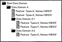 Examples: If in the structure shown in figure 1 it would not be able to set Domain A as an identity domain since there are two of type X with name AB123. In the structure shown in figure 2 Data Domain A could be set as identity domain since it has no two member having the same feature type and the same name