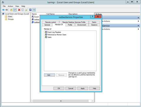 Figure 1 and 2 show the typical settings when using a local user account to run the Redbex Application Server Windows Service. For detailed instructions on how to create a Windows user account (local or domain) please refer to your operating system's documentation.