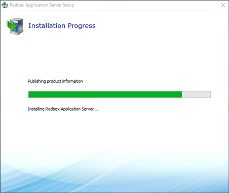 After clicking on Install the Application Server software will be copied to your system and will configured according to the settings you specified. If you advised the Setup Assistant to start the Application Server Windows Service after installation it will be automatically started as soon as the installation is finished. If not you will have to start the Service manually.