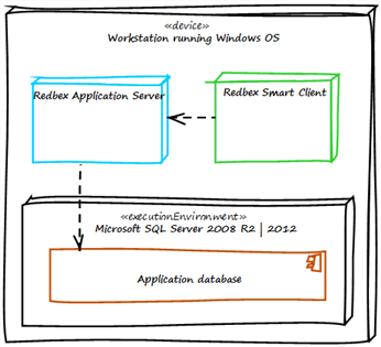 If you decide to use this scenario you will install the Application Server Database, the Application Server and the Smart Client on the same computer.