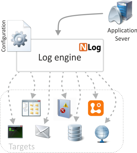 For a persistent record of these log messages the Application Server makes use of a logging engine based on the NLog logging platform. This logging engine allows you to configure where and how log messages are persisted. The Application Server comes with a default configuration for this logging engine that advices the logging engine to persist log data to files in the log directory and to the Windows Event Log (based on certain conditions). If you want to change the logging configuration you can do so by creating an NLog configuration file. You can define your own log targets (where log messages will be persisted) and rules that route log messages to targets based on conditions. The logging engine supports over 20 types of log targets, among them the file system, the Windows event log, email, logentries.com, etc.