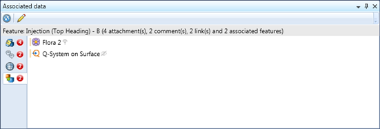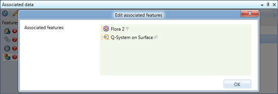 The Associated Features tab in the Associated Data window shows feature associations stored for a feature or observation and allows to manage those associations.