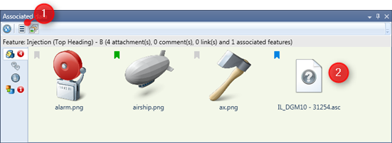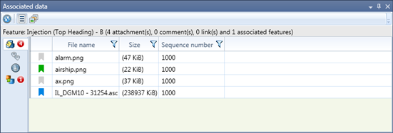 The Attachments tab in the Associated data window view and edit attachments stored for features or observations. The tab shows the attachments stored for the currently active feature, or for the currently selected observation in the Feature editor.