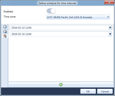 With the Time zone Drop-down list you can choose the time zone in which the whole Event Schedule is defined. The drop-down lists time zones supported by the operating system on which the Smart Client is running. If the Time zone is not given the Application Server will interpret all date and time values of the event schedule in the time zone set on the Operating System of the Application Server.