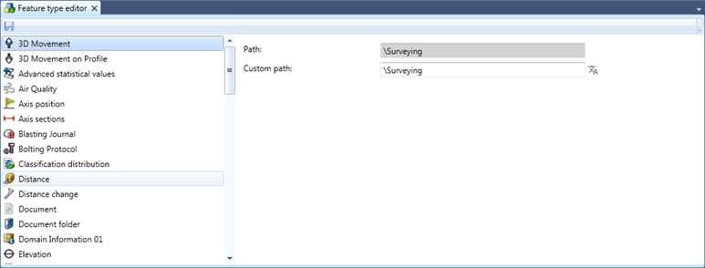 The Feature Type Editor window is a document window that can be used to globally specify some settings of for feature types. The window can be opened from the ServerAdministration Ribbon.