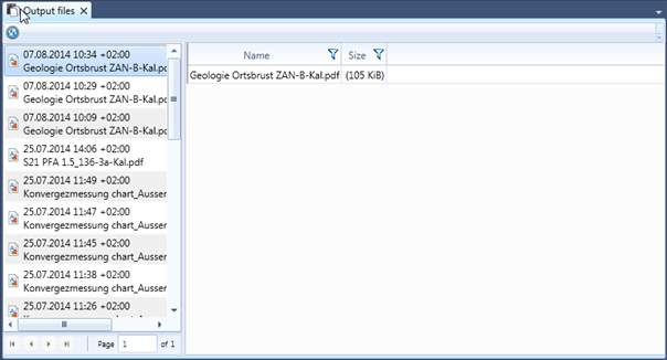 The Actions list on the left the window shows the actions that resulted in output files in chronological order (latest is shown first). Selecting one of the elements in this list will show the files associated with this action in the files list on the right. One action might contain any number of files.
