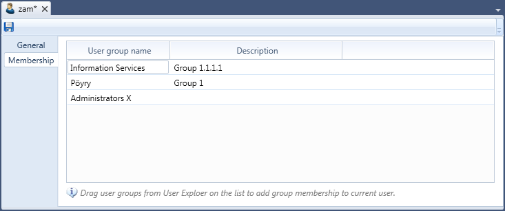 To add the user to other user groups drag the user groups from the Users & User Groups window onto the grid. To remove the user from a user group select the group in the grid and then select Delete from the context menu.