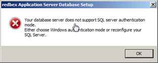 Figure 2: Message shown if the specified database server does not support SQL authentication mode