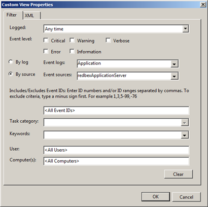 The Application Server logs to the Windows Application Event Log and uses the Event Log Source RedbexApplicationServer , the Smart Client uses the Event Log Source RedbexSmartClient.