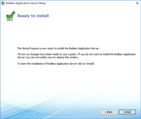 After the Setup Assistant collected all necessary information it will show a dialogue where you can start the actual installation. Till this step in the Setup Program no changes were made to your system, so it is safe to exit at this point if you do not want to install the Application Server.