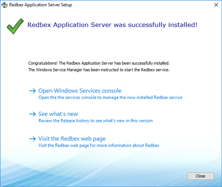 Note that the Windows Service for the Application Server is not started automatically at the end of the installation if not advised in Step 4: Windows Service configuration.