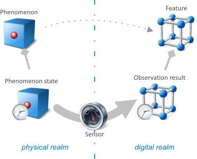 Figure 1: Interaction between Phenomena, Sensors, Observations and Features.
