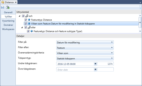 Filter terms are shown with a blue ball symbol and a textual representation of the filter term (Figure 1:2). The textual representation does not always describe all settings of the term, it is just a hint to quickly assess the term. If you select a filter term in the Expression tree you can configure the properties of this filter term in the Details area. Every filter node type has it own properties described in chapter View filter terms.