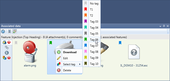 The tag assigned to the selected attachments is is shown in grid view as well as in thumbnail view. You can choose a tag for an attachment from the context menu or from the Attachment details window modal window.