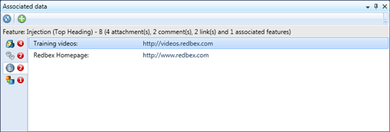 The Links tab in the Associated Data window shows links stored for a feature or observation and allows to manage those links.