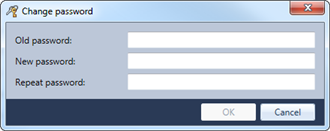 The Change password window is a modal window that is used to change the password of the currently logged on user. The window can be opened from the Administration Ribbon tab.