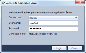 The Connect to Application Server window is a modal window that is used to establish a connection with a Redbex Application Server.