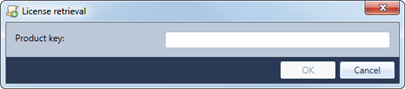 The license retrieval window is a modal window that can be used to download and install a license code from the Distribution Server. The window can be opened from the Ribbon's Server Administration tab.