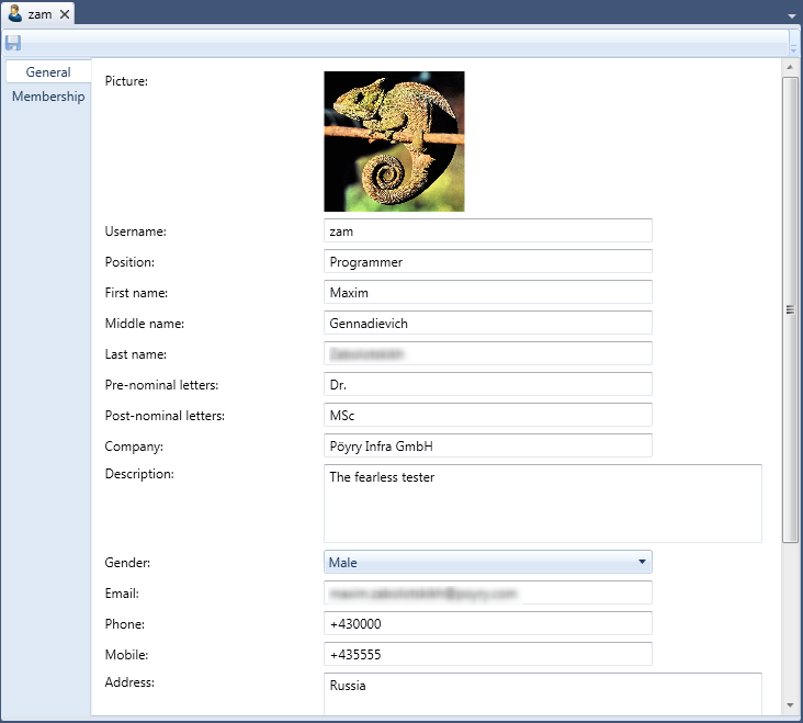 On the General tab you can modify the details of the user. Picture can be used to store a picture of the user. Select Change Image from the context menu to select a picture of the current user. The Smart Client will automatically resize the selected image to a maximum size of 400 x 400 pixel.