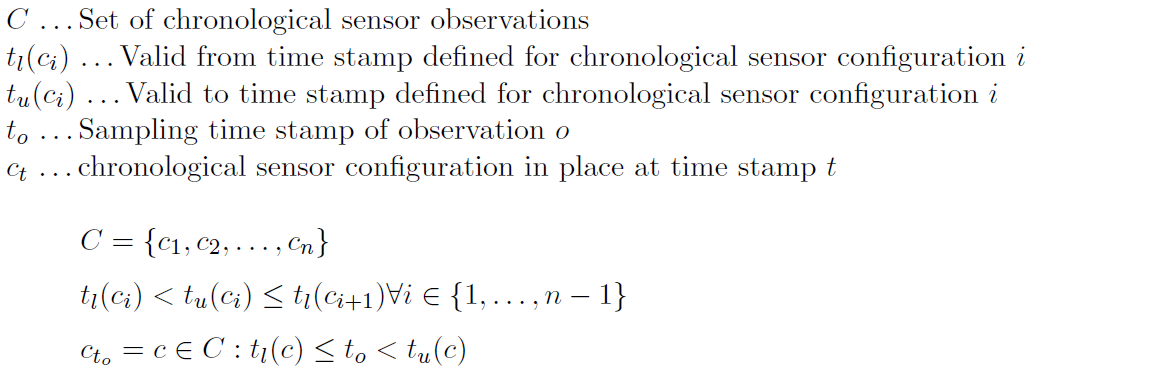Figure 1: Specification of the chronological sensor configuration valid for a specific observation sampling timestamp.